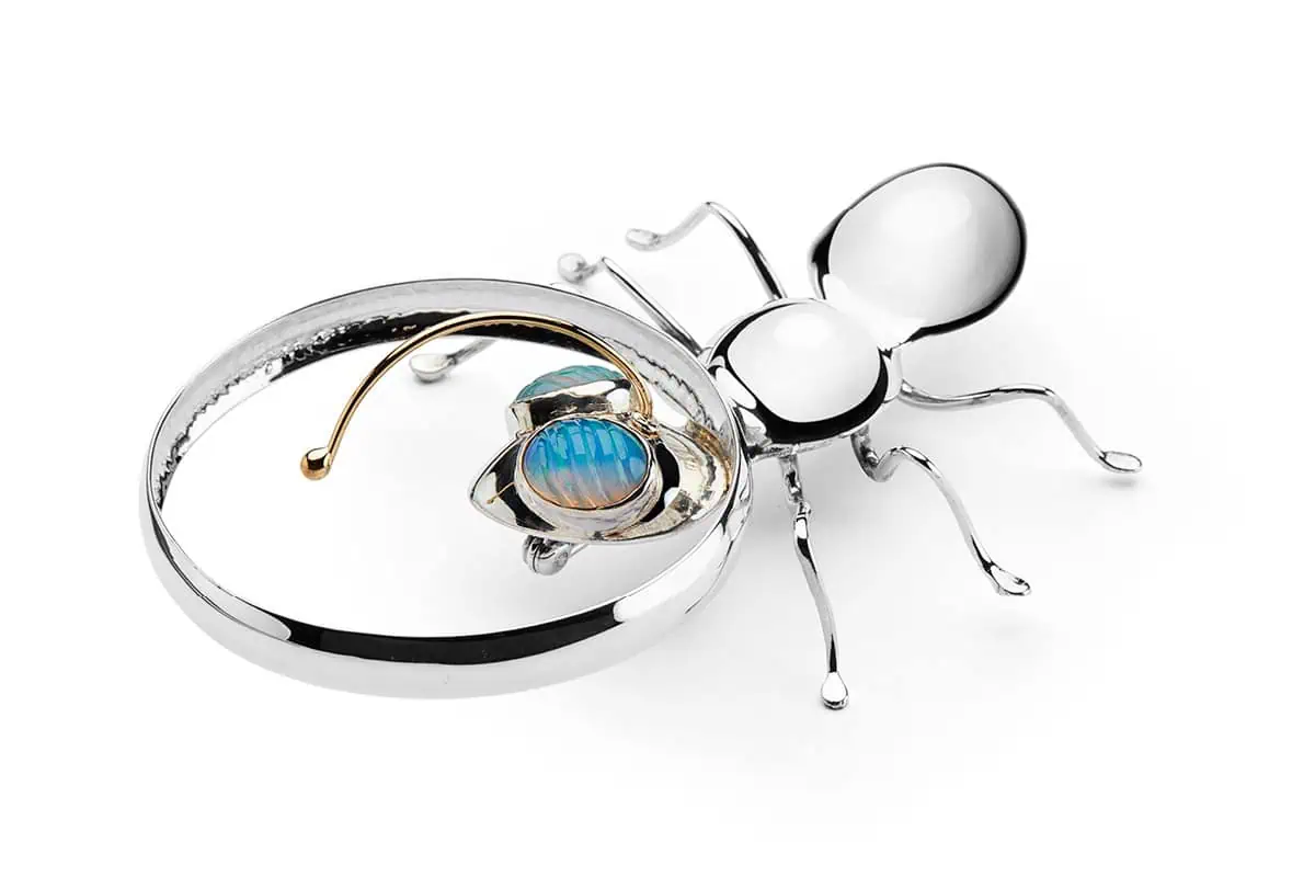 I mine insektsmykker fabulerer jeg over kravlets kreative evner med klassiske guldsmedeteknikker og skaber insekter med genkendelige træk som stædighed, årvågenhed, følsomhed og charme.