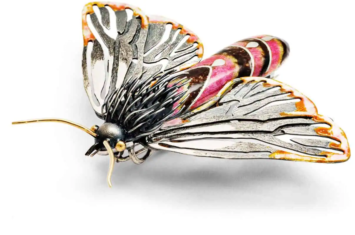 Bagefter bliver insektet skabt i værkstedet ved hjælp af sølv og guld. Ej her er det lige så manuelt, som det kunne lyde, for materialerne bliver levende mellem Tinas hænder, og påbegynder en sanselig udveksling med hende. Ved at respektere metallernes væsen og ikke tvinge dem ind i en given form, kommer der et samarbejde i spil, en dans mellem Tina og det fremvoksende smykke.