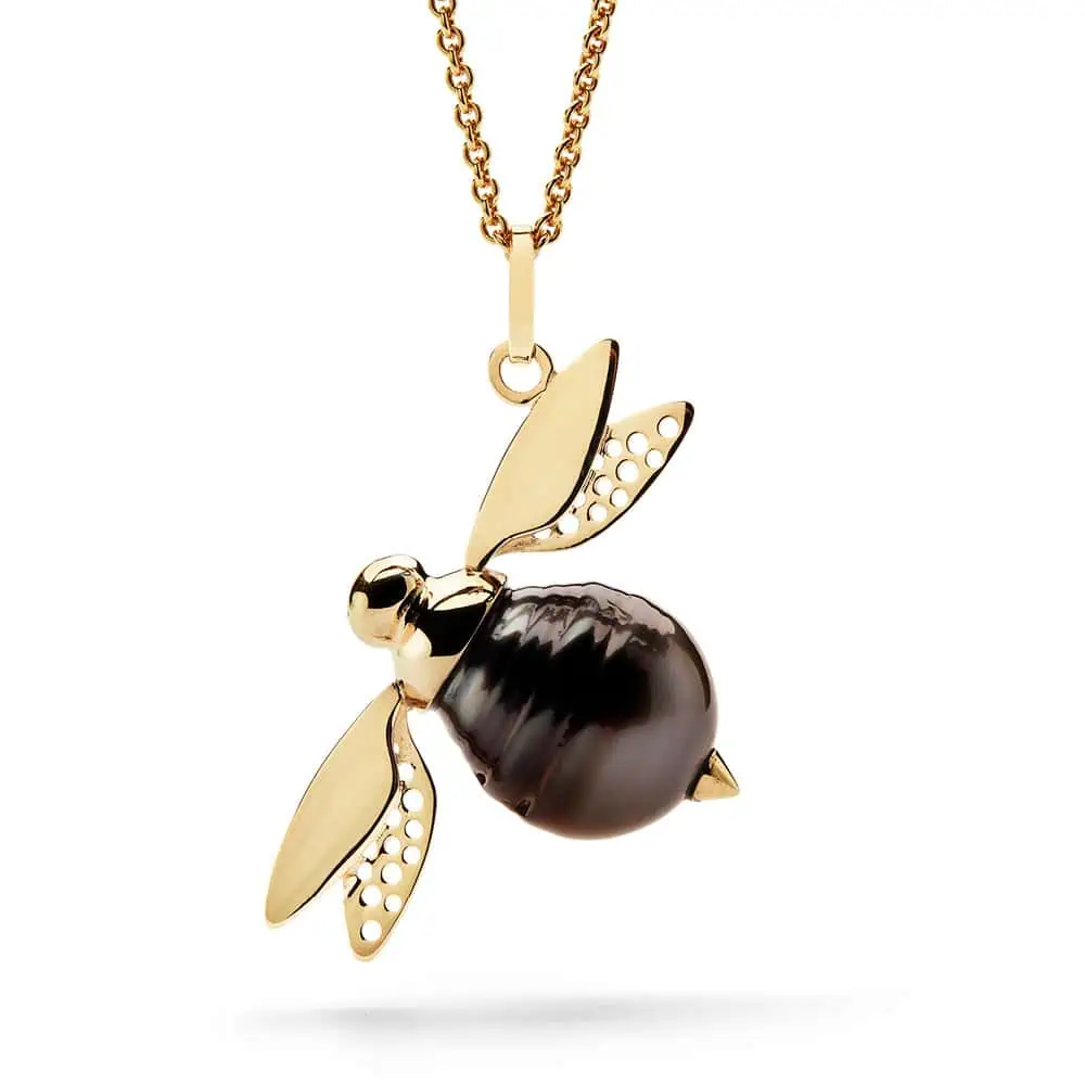 Guldhalssmykke med forskellige Tahitiperler, du vil finde dem i grå, lyse, brunlige, mørke, grønlige farver og med cirkleringer eller anden form for særkende fra perlernes naturlige udformning. Brumbassen findes også i sølv med ferskvandsperler i forskellige hvide/rosa nuancer.