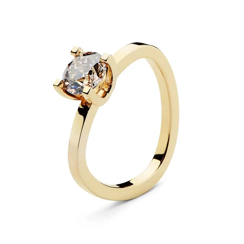 14 karat guld med 1.12 carat naturlig gylden brillant.